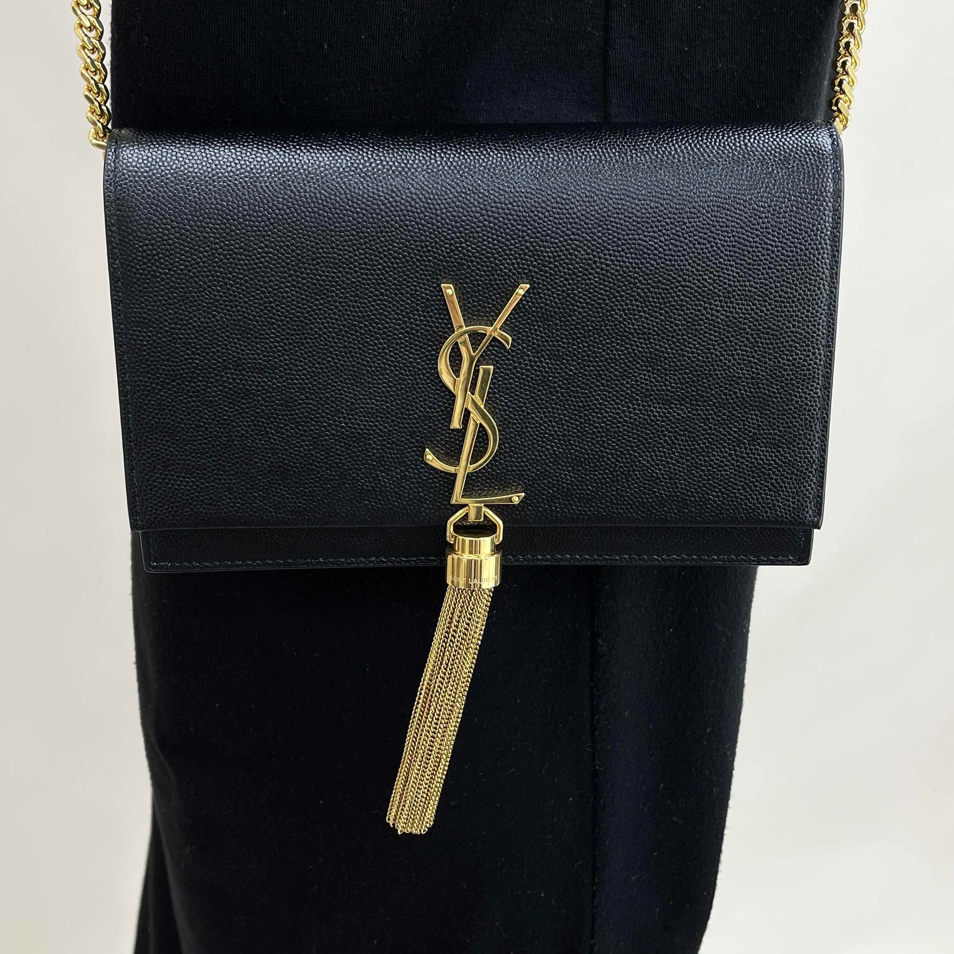 Saint Laurent Kate Medium Tassel YSL Wallet on Chain in Grained PO08